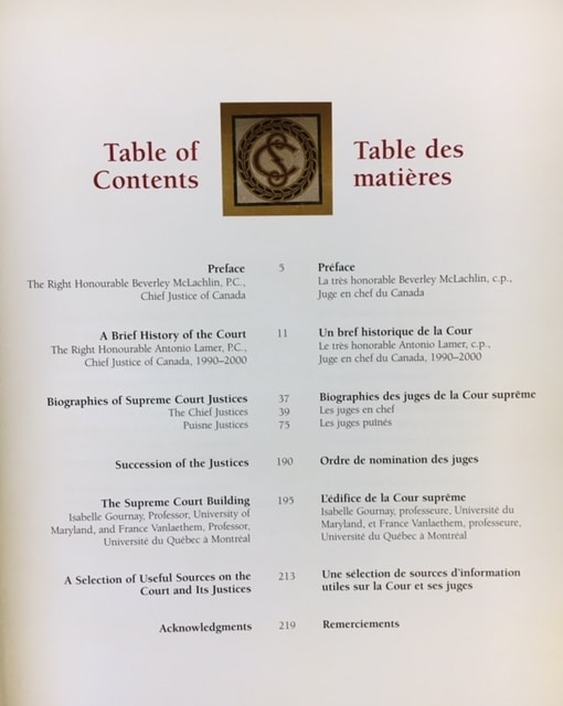 The Supreme Court of Canada and Its Justices 1875-2000. Preface by The Right Honourable Beverley McLachlin, P.C., Chief Justice of Canada (2000-2017)